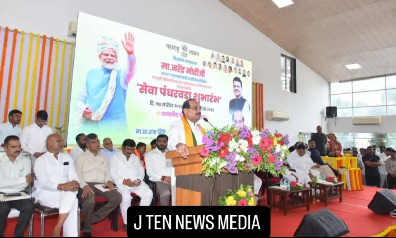 राहाता येथे प्रधानमंत्री नरेंद्र मोदी यांच्या अमृतमहोत्सवी वाढदिवसानिमित्त छत्रपती शिवाजी महाराज महाराजस्व अभियानांतर्गत जिल्हास्तरीय सेवा पंधरवड्याचा (दि. १७ सप्टेंबर २०२५ ते दि. २ ऑक्टोबर २०२५) शुभारंभप्रसंगी ते बोलत होते. यावेळी खासदार भाऊसाहेब वाकचौरे, आमदार विठ्ठल लंघे पाटील, आमदार काशिनाथ दाते, आमदार अमोल खताळ, जिल्हाधिकारी डॉ. पंकज आशिया, उपवनसंरक्षक धर्मवीर साळविठ्ठल, माजी खासदार डॉ. सुजय विखे पाटील, जिल्हा मध्यवर्ती सहकारी बँकेचे संचालक आण्णासाहेब म्हस्के पाटील, राहाता कृषी उत्पन्न बाजार समितीचे सभापती ज्ञानेश्वर गोंदकर, नितीन दिनकर, दिलीप भालसिंग, अनिल मोहिते आदी मान्यवर उपस्थित होते.