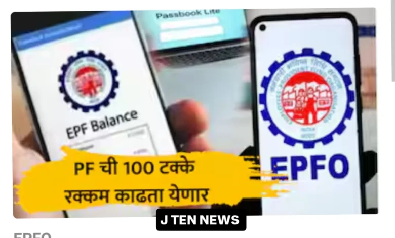 [14/10, 6:09 am] J TEN NEWS: EPFO : मोठी बातमी! पीएफ मधून आता 100 टक्के रक्कम काढता येणार, नव्या नियमाने अडचणी दूरEPFO : ईपीएफओ खातेधारकांना आधी रक्कम काढण्यासाठी अनेक अडचणी येत होत्या. त्यामध्ये आता अधिक सुलभीकरण करण्यात आलं आहे. त्यामुळे कर्मचाऱ्यांना 100 टक्के पीएफ काढता येणार