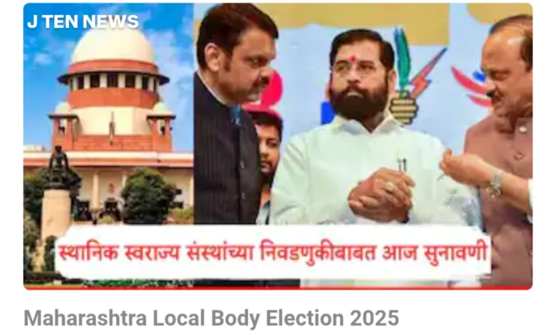 [25/11, 9:00 am] J TEN NEWS: Supreme Court Maharashtra Local Body Election 2025: महाराष्ट्रातील निवडणुकांवर सुप्रीम कोर्ट स्थगिती देणार?; आजच्या सुनावणीकडे सर्वांचं लक्ष, नेमकं प्रकरण काय?Supreme Court Maharashtra Local Body Election 2025: स्थानिक स्वराज्य संस्थांच्या निवडणुका संदर्भात आज सर्वोच्च न्यायालयात महत्त्वाची सुनावणी पार पडणार आहे.