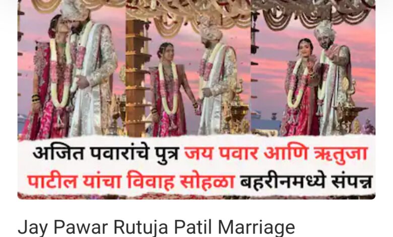 [6/12, 9:53 am] J TEN NEWS: Jay Pawar Rutuja Patil Marriage : अजित पवारांचे पुत्र जय पवार-ऋतुजा पाटील यांचा विवाह सोहळा बहरीनमध्ये संपन्न, लग्नाचे फोटो समोरJay Pawar Rutuja Patil Marriage : या शाही विवाह सोहळ्याच्य वरातीचा फोटो, व्हिडीओ समोर आले आहे.